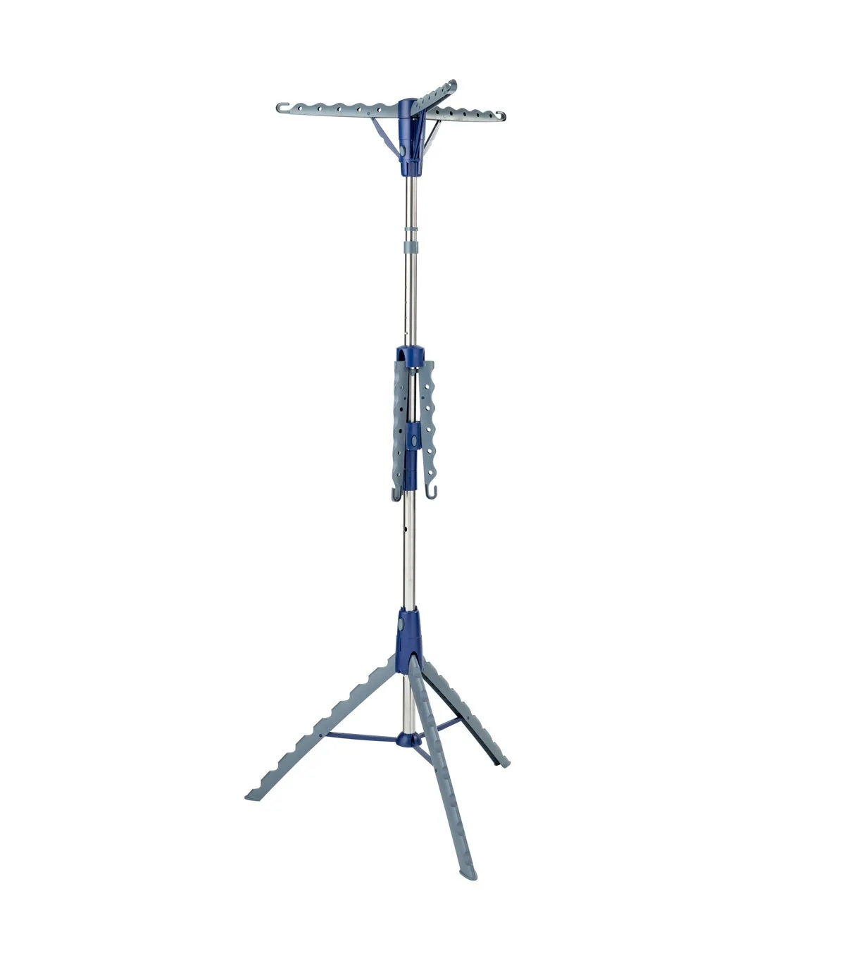 This tripod clothes drying rack is for people who like to line-dry clothes, but who don’t like the line aspect of the process. A clothes line can impart awkward creases onto a sweater or shirt. Or if a breeze blows, a delicate camisole can fall off the line, crumpling into a wrinkled heap on the floor. With this 2-tier tripod drying rack, both of those scenarios are unlikely, since the rack doesn’t rely on a line; but rather, smooth ridges that cradle up to 30 hanger hooks. If a button-up shirt is firmly fixed on a hanger, then it should remain firmly afloat, fluttering in the breeze nearly six feet off the ground from the rack’s extendable top tier. When the drying is done, the rack neatly collapses for easy storage.