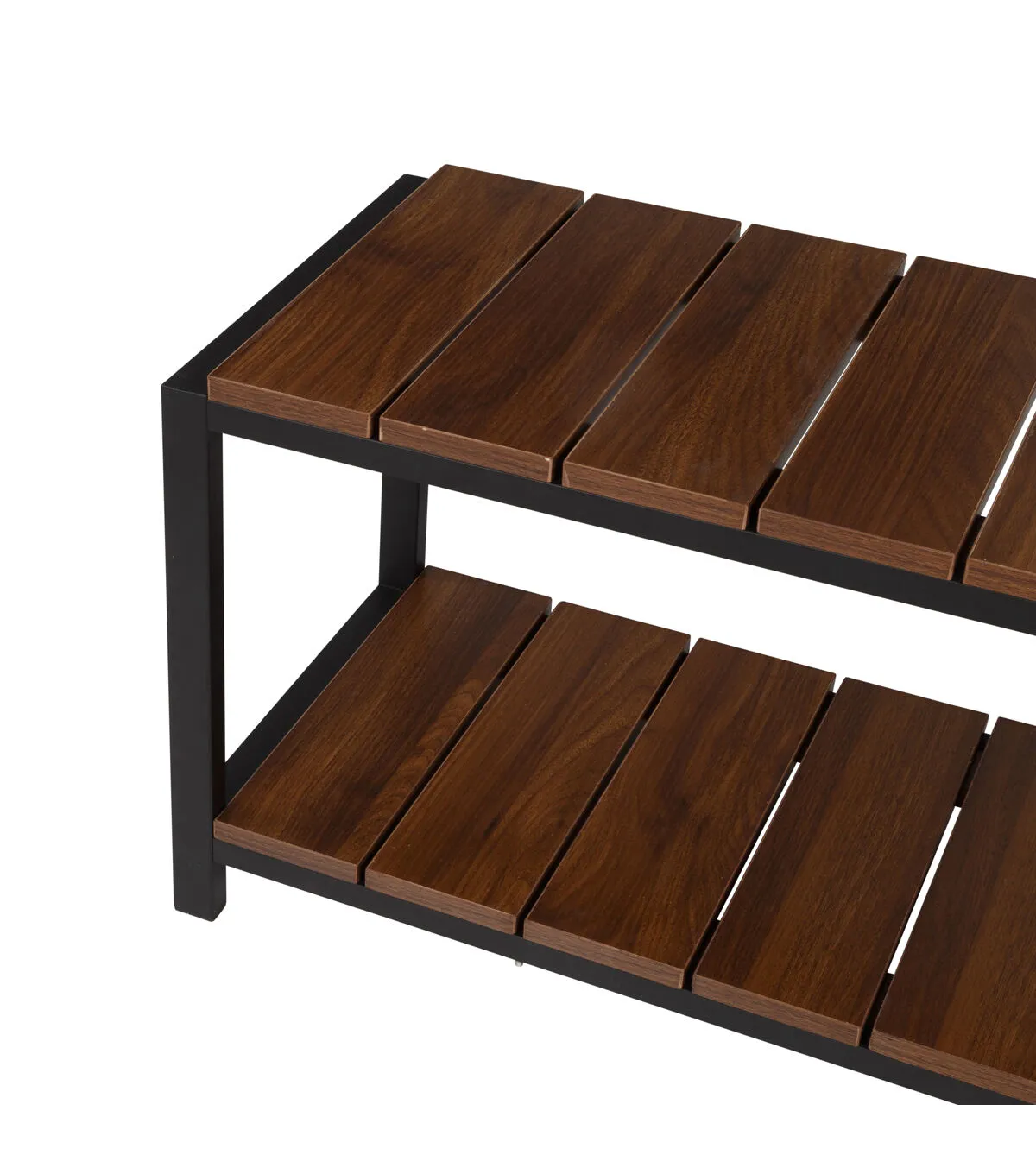 Whether you’re coming or going, shoes tend to congregate near entryways. Enter the 2-tier walnut shoe bench, with its timeless style and much-needed functionality. Store shoes on both shelves or use the bottom shelf for shoe storage and the top for all that handbag or your favorite accessory that you need handy when you’re running out the door. And it holds enough weight for you sit on the top bench while putting your shoes on or taking them off after a long day.