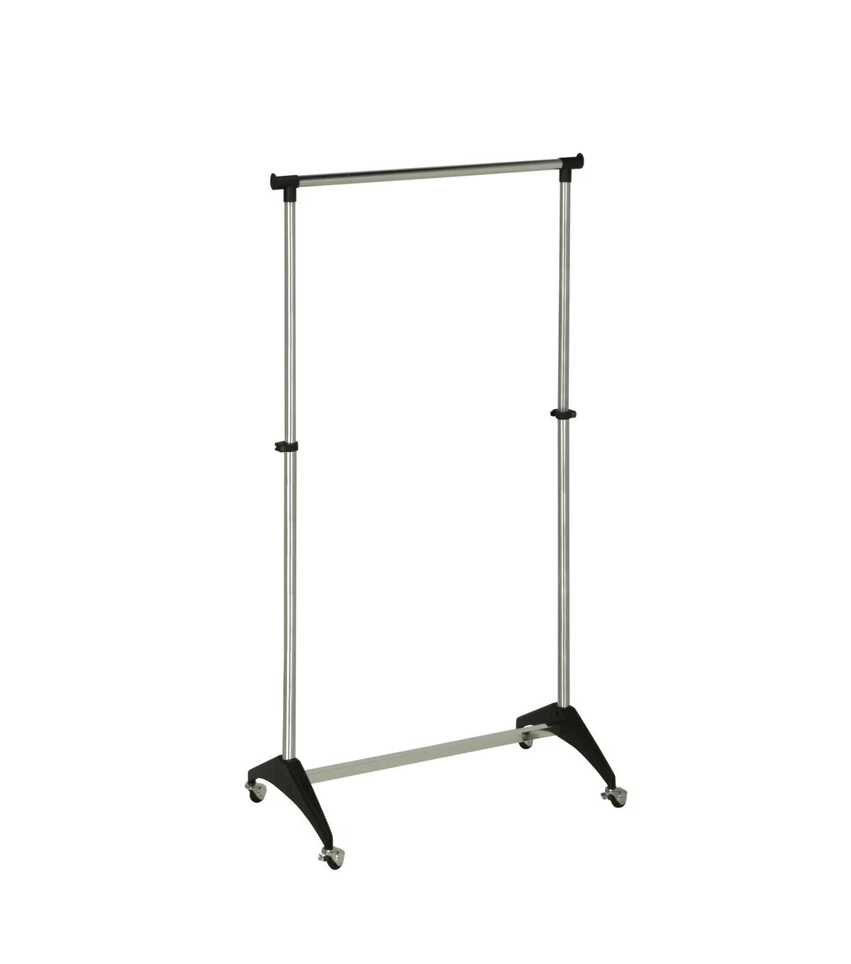 Honey-Can-Do GAR-03535 Modern Adjustable Garment Rack, Chrome. This sturdy garment rack features steel construction and goes from room to room on smooth rolling ball casters. The hanging bar adjusts to accommodate short or long garments and is perfect for managing out-of-season clothing, outdoor gear, or items hung to dry in the laundry room. The modern design adds a contemporary feel to any room of the house that needs extra garment storage.