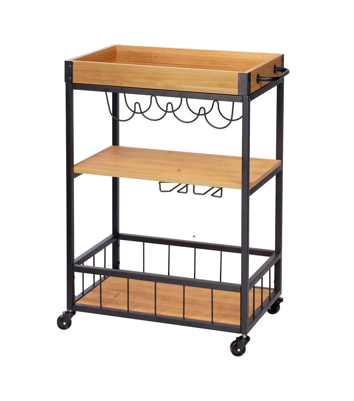 - Wheels make bar cart easy to move from room to room, lock for stability