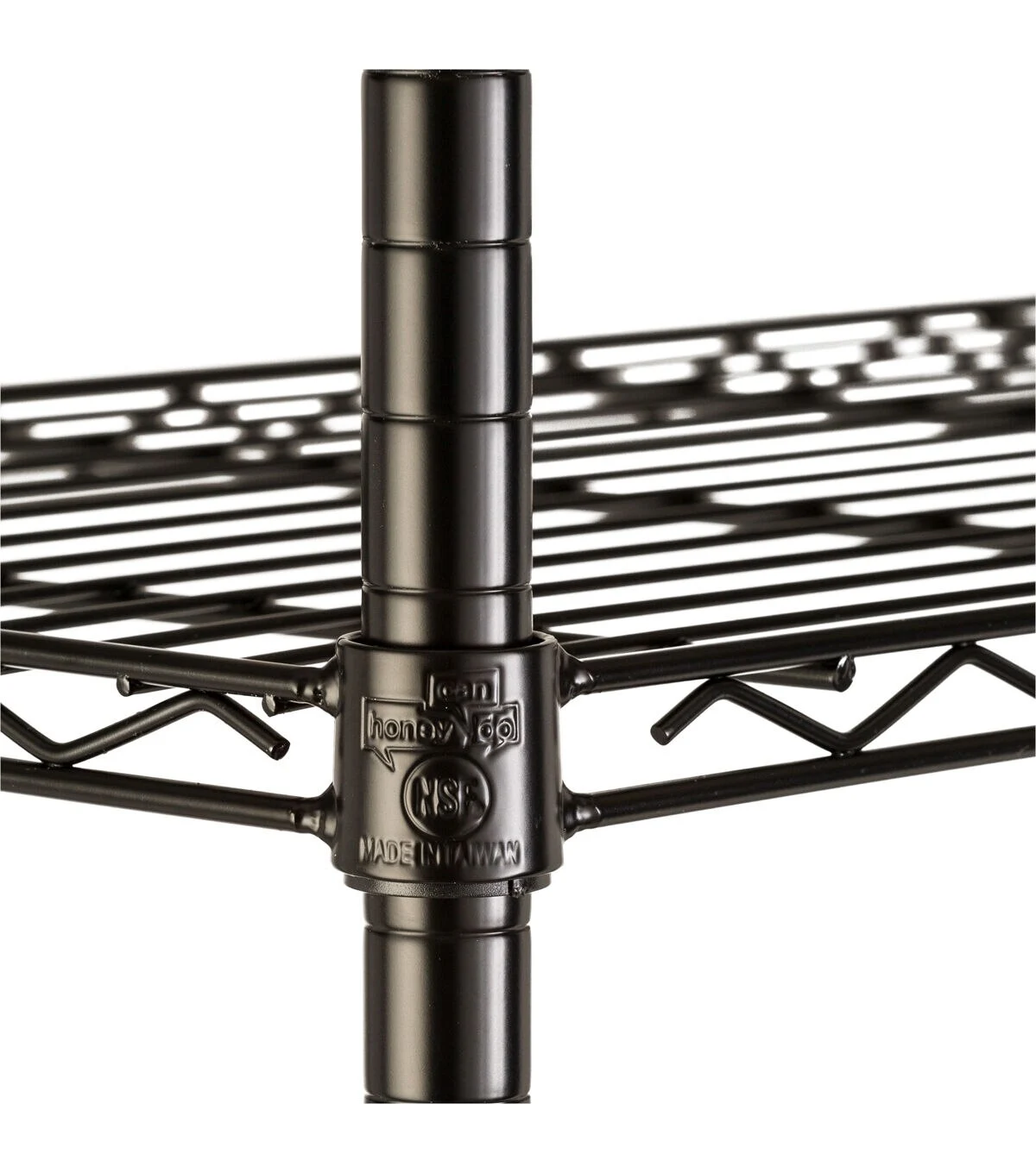 Create visible, accessible storage space instantly with Honey-Can-Do industrial shelving systems. Contemporary black finish and steel frame make this unit the perfect blend of style and functionality. Durable enough for the home, garage, pantry, or commercial kitchen; this commercial grade shelving is capable of withstanding up to 350lbs per shelf. Adjustable shelves allow you to change the configuration as your storage needs evolve. Combine multiple units to create a customized storage wall. The no-tool assembly allows you to construct in minutes a shelving unit that will last for years.