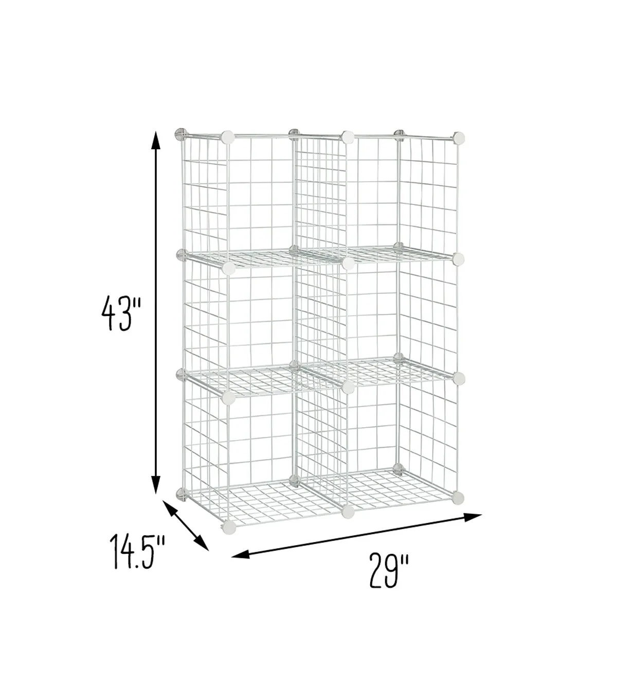 Create unlimited configurations or combine multiple storage cubes to build a customized storage solution. Easy snap together assembly is achieved with multi-angle and heavy duty composite connectors. Made from heavy gauge steel wire, this organization unit is perfect for bedrooms, bathrooms, laundry areas, dorms, and the garage.