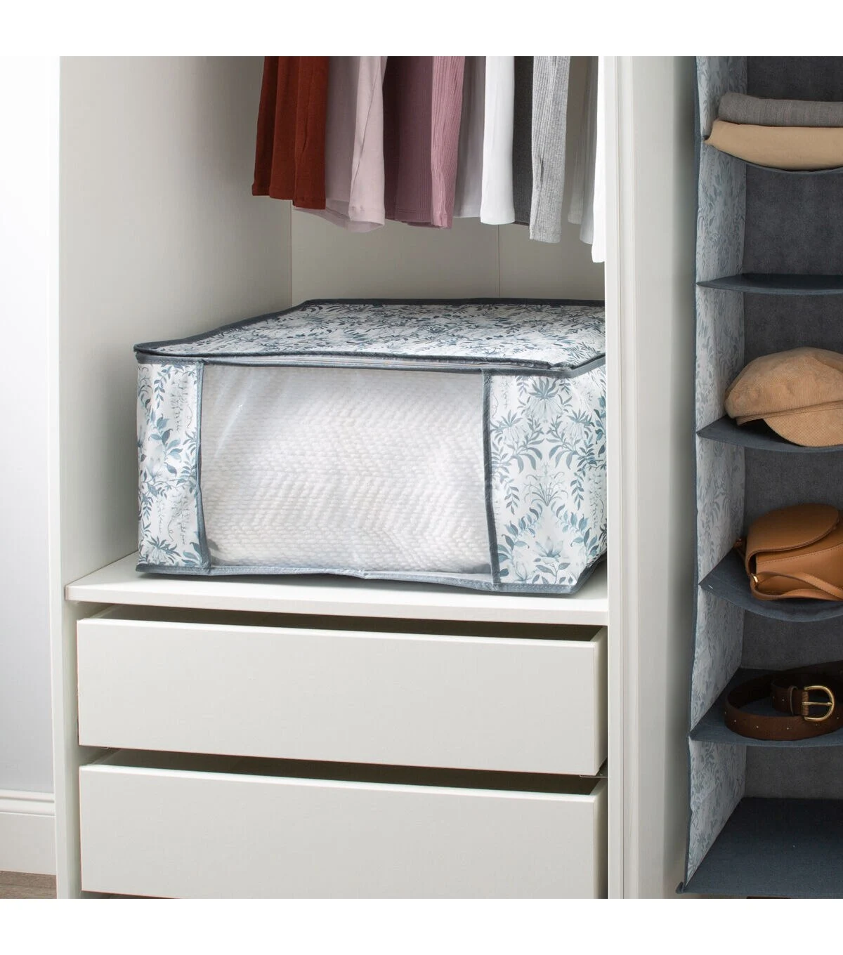 Laura Ashley's Blanket Bag is made of 100% PP Nonwoven breathable Material that keeps your blankets and other belongings safe. Perfect storage solution for off-season items such as blankets, garments and more while also protecting them against dust and damage thanks to its full zippered top. Durable handles allow for easy carrying and see through window on front allows you to look inside of the bag. Bag helps eliminate odors to help linens stay fresh and clean. Flexible and adjustable design makes it easy to fit in tight spaces to store.