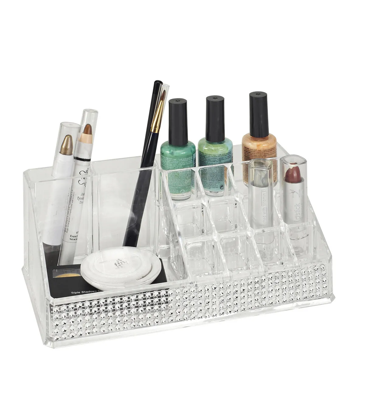 Keep all of your finishing touches in one place with this Laura Ashley 16-Section Cosmetic Holder. This accessory is ideal for a bathroom, vanity or dresser. It will help you get ready quickly when you're on the go. You can keep makeup, rings, earrings and more easily within reach and organized. This holder is transparent for your convenience.