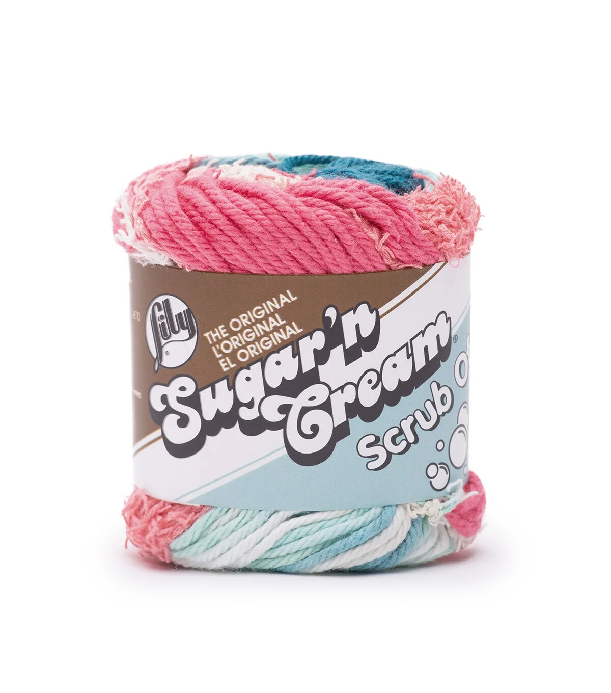 Create unique, multi-textured projects that look beautiful and work to tackle kitchen cleaning or provide spa-like exfoliation. The New Lily Sugar’n Cream Scrub Off is a 100% cotton worsted weight yarn that features alternating sections smooth cotton and a new scouring section for tougher messes. Get the best of both worlds in the kitchen and more!