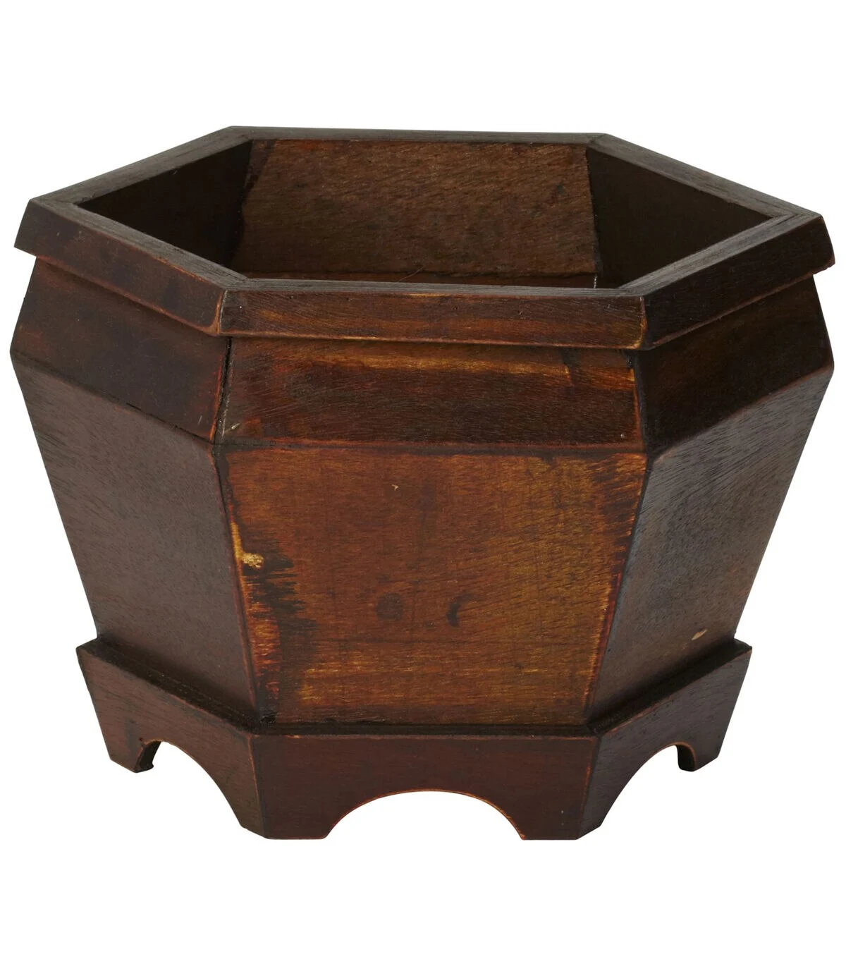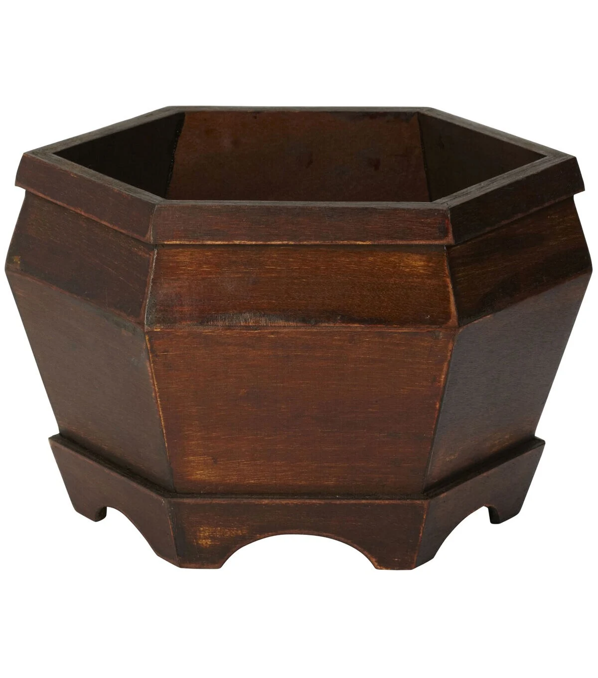 Going with the philosophy of ��more is better��, our three-piece Hexagon Wood Pot set is sure to triple the pleasure. Each pot is finished with a beautiful earthen finish in a rich variation of dark and light shades. With the sharp hexagon shaped body and rim, this interesting collection is sure to catch many a passerby��s eye, be it in your home or office.