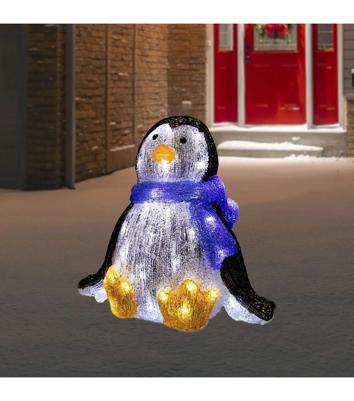 Create your own winter wonderland this holiday season. Pre-lit with 32 pure white LED lights this adorable penguin is sure to light up your indoor or outdoor decor. Great for adding a dazzling glow to seasonal or special occasion decorating.