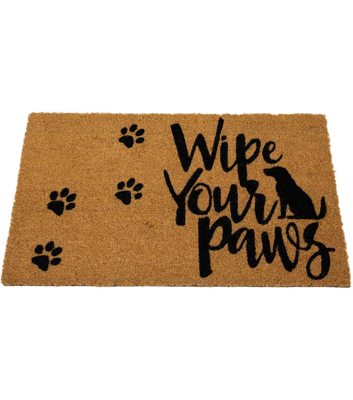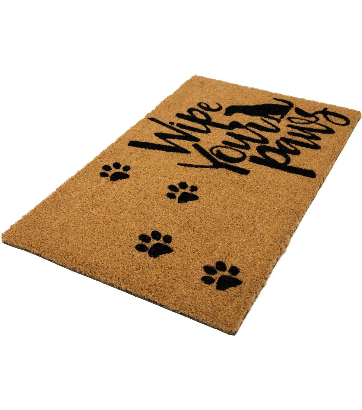 Make certain cleanliness is at your doorstep with this adorable doormat. The playful "wipe your paws" message adds a delightful touch to your entryway reminding guests to leave dirt and mess outside. Its backing keeps the doormat securely in place providing stability even during busy foot traffic on the front of the door or porch. Bring both functionality and charm to your home with this doormat.