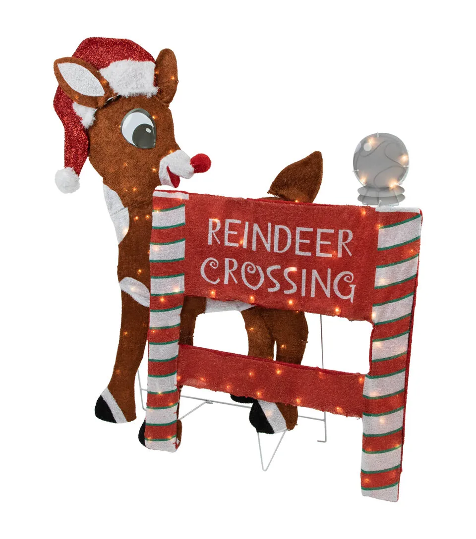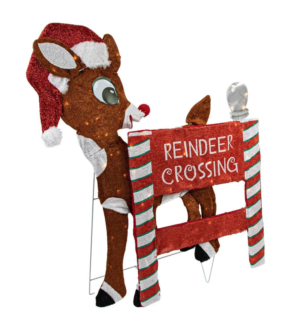 Everyone loves Rudolph! A classic uplifting story of an underdog rising to fame makes this decoration a must have. Rudolph stands near a Reindeer Crossing sign waiting for the rest of his reindeer friends. With durable construction and easy installation this display will take center stage season after season.