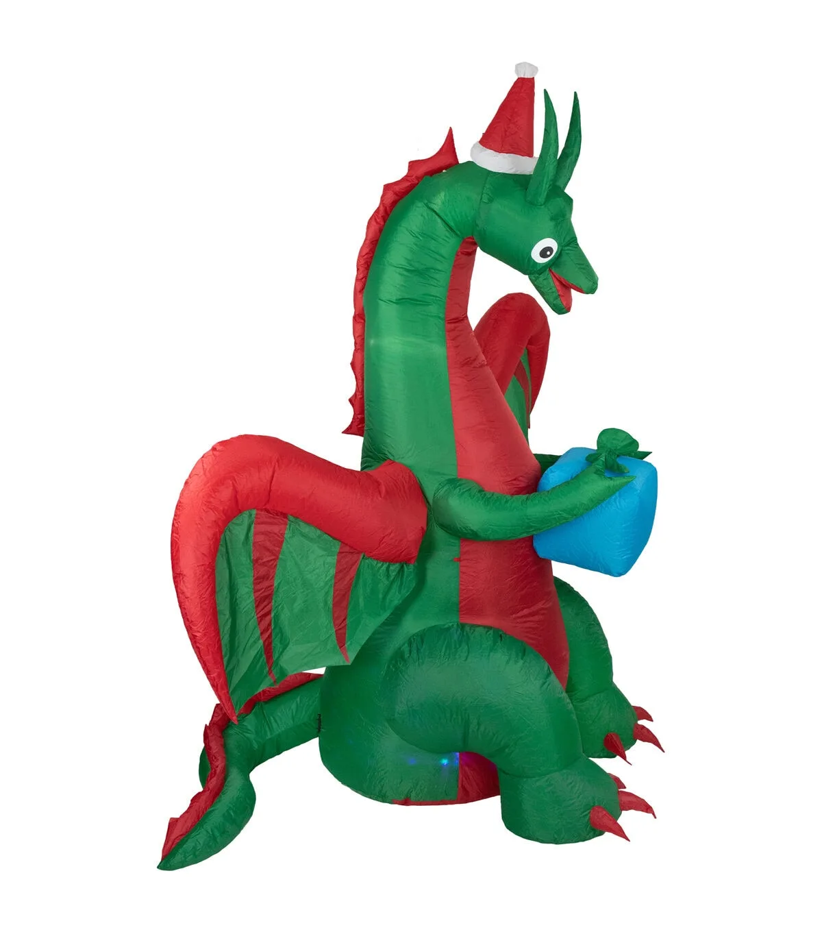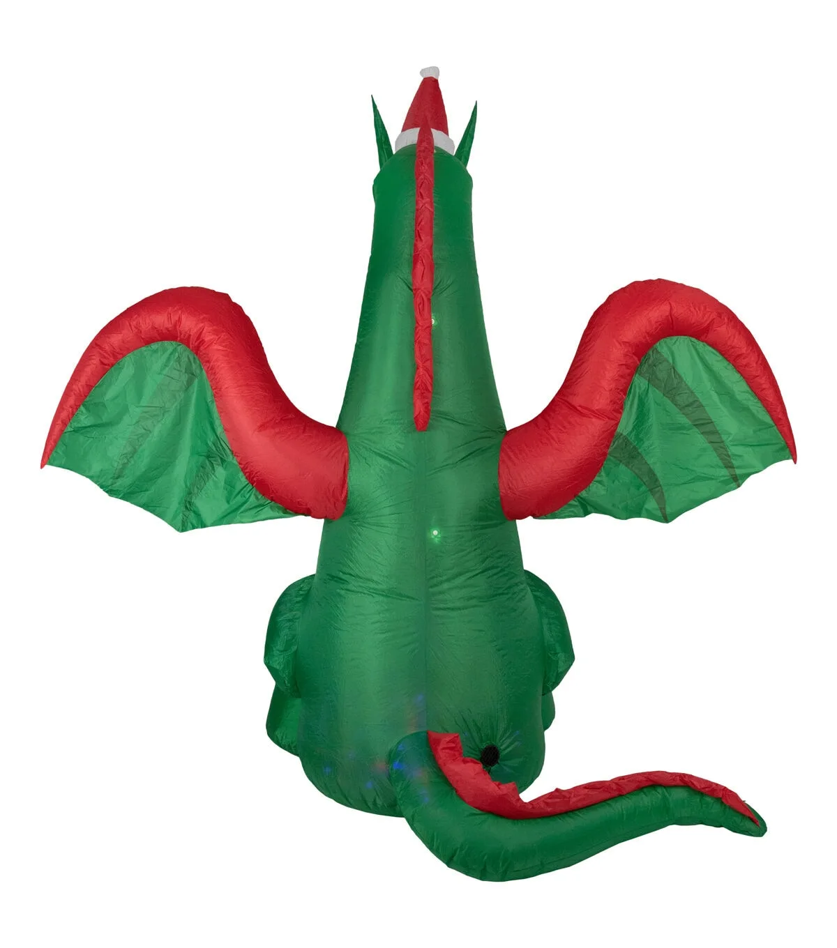 Add some fantasy to your holiday decorations with this mystic dragon inflatable. Lighted with colorful LED lights and decked out in his Santa hat this giant Christmas dragon will be the talk of the town. Inflates and deflates in minutes for effortless decorating.