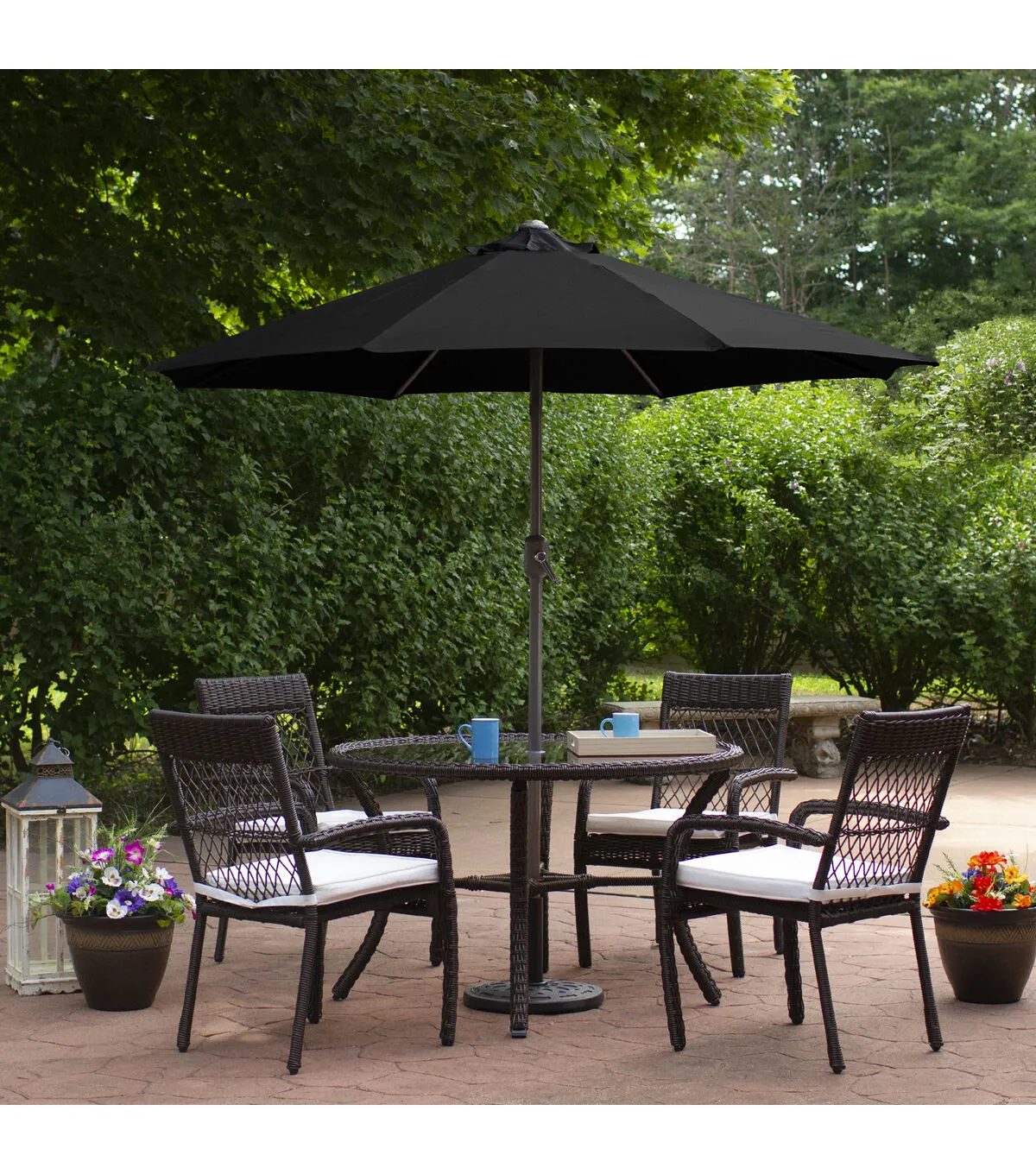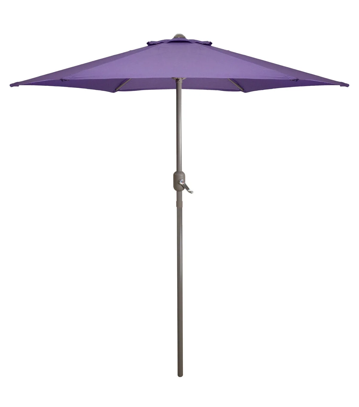 Keep the sun at bay in style with this richly colored market umbrella. Perfect coverage for a 30-inch bistro table and two chairs. Crank opening for easy use with a powder-coated steel frame and ribs for durability. Features: Umbrella shape: hexagon Canopy color: navy blue Frame and pole color: brown Diameter of open umbrella: 7.5' Height: 7.5' Pole diameter: 1.5" (38mm) Lift: hand crank 6 ribs Material(s): 160 gram polyester canopy/powder-coated steel Note: Umbrella only base is not included