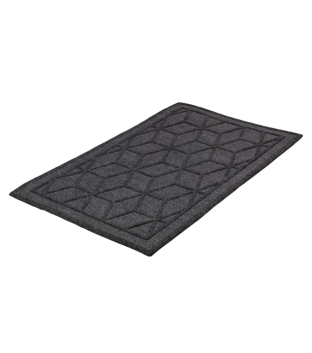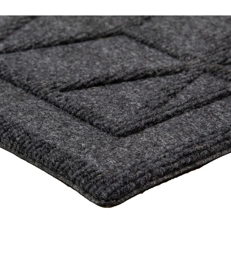 Adorn your doorways with this diamond-patterned outdoor mat while also protecting your floors and carpets from outside debris. It will add a nice pop of color while doing double-duty trapping in dirt and moisture. Made from durable materials coir fibers it will withstand your family and friends' foot traffic. Product Features: Durable and rectangular gray doormat Diamond pattern with a linear border pattern Skid-resistant backing Heavy duty construction for lasting durability Perfect for the front door porch or garage area Recommended for outdoor only Care instructions: vacuum sweep or lightly hose clean Dimensions: 0.75"H x 30"W x 18"D Material(s): coir/polypropylene
