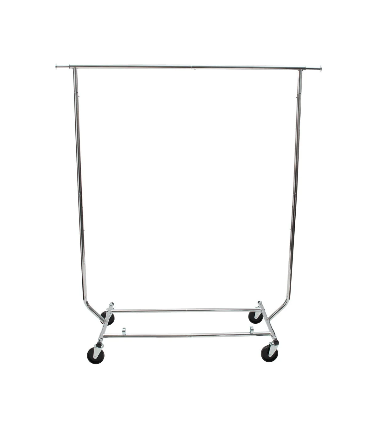 Organize your garments with the Organize It All Ultra Adjustable Garment Rack. Offers you additional closet space when needed. This rack is expandable for adding additional clothes. Heavy duty and durable to hold coats, suits, dresses and more. It is designed with 4 wheels to make mobility of the rack easy. Put in your bedroom, closet, or office for additional clothing storage space.