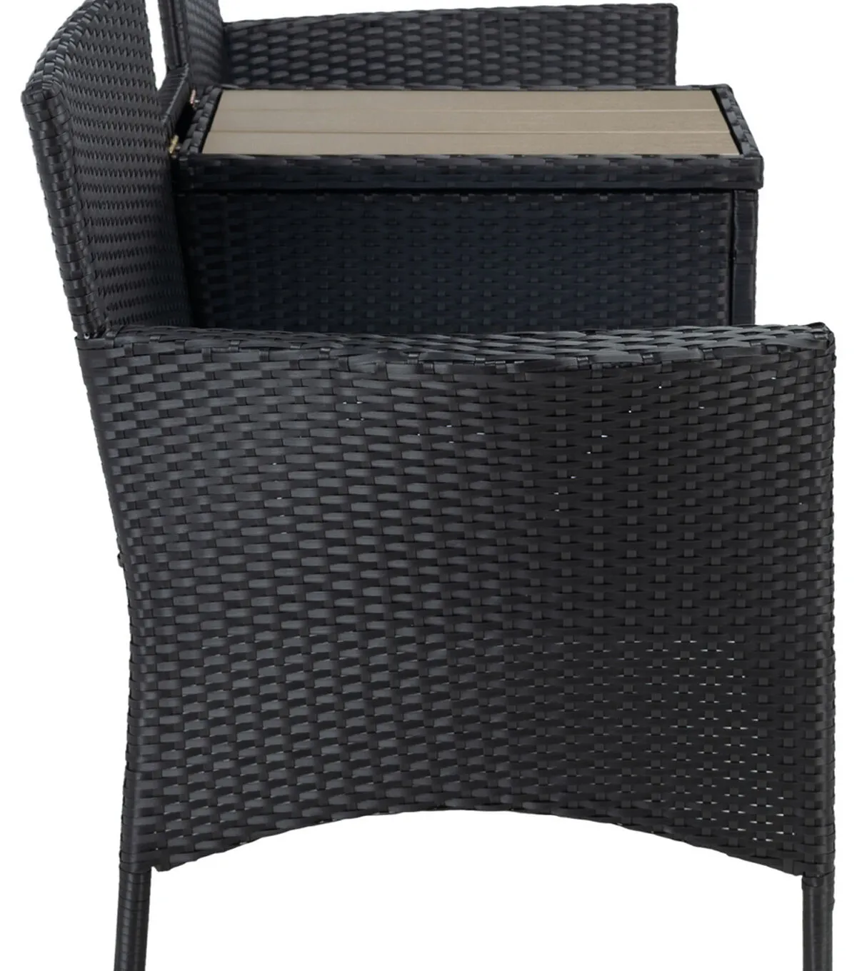 Form meets function for outdoor living in this Viora Loveseat. Viora��s subtle curves and clean lines are wonderfully highlighted by its modern black wicker details and plush white cushions, and a built in box with a gas lift provides discrete storage on the porch or patio.