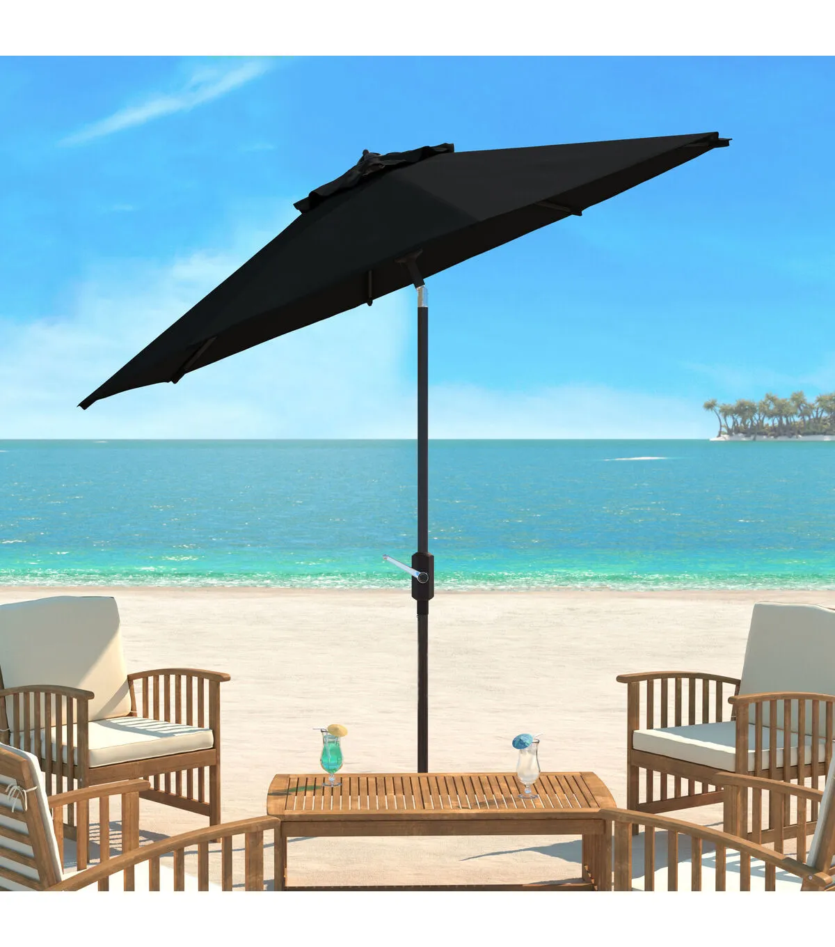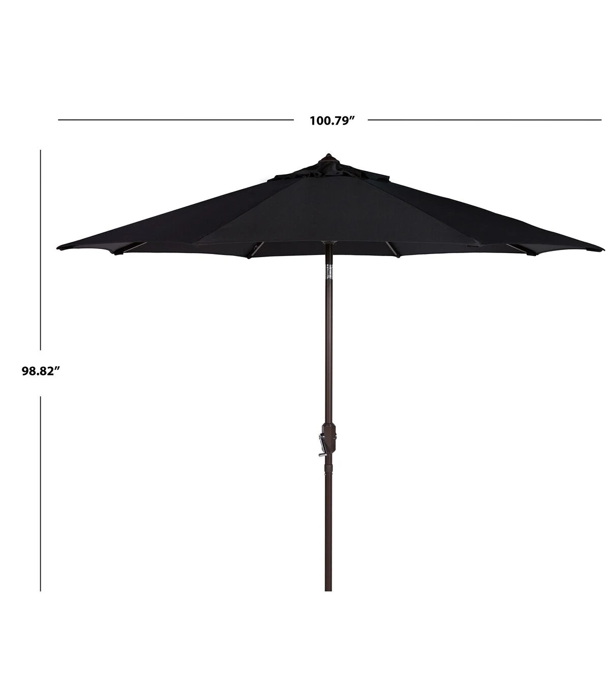Safavieh 9' Ortega Black Auto Tilt Crank Patio Umbrella