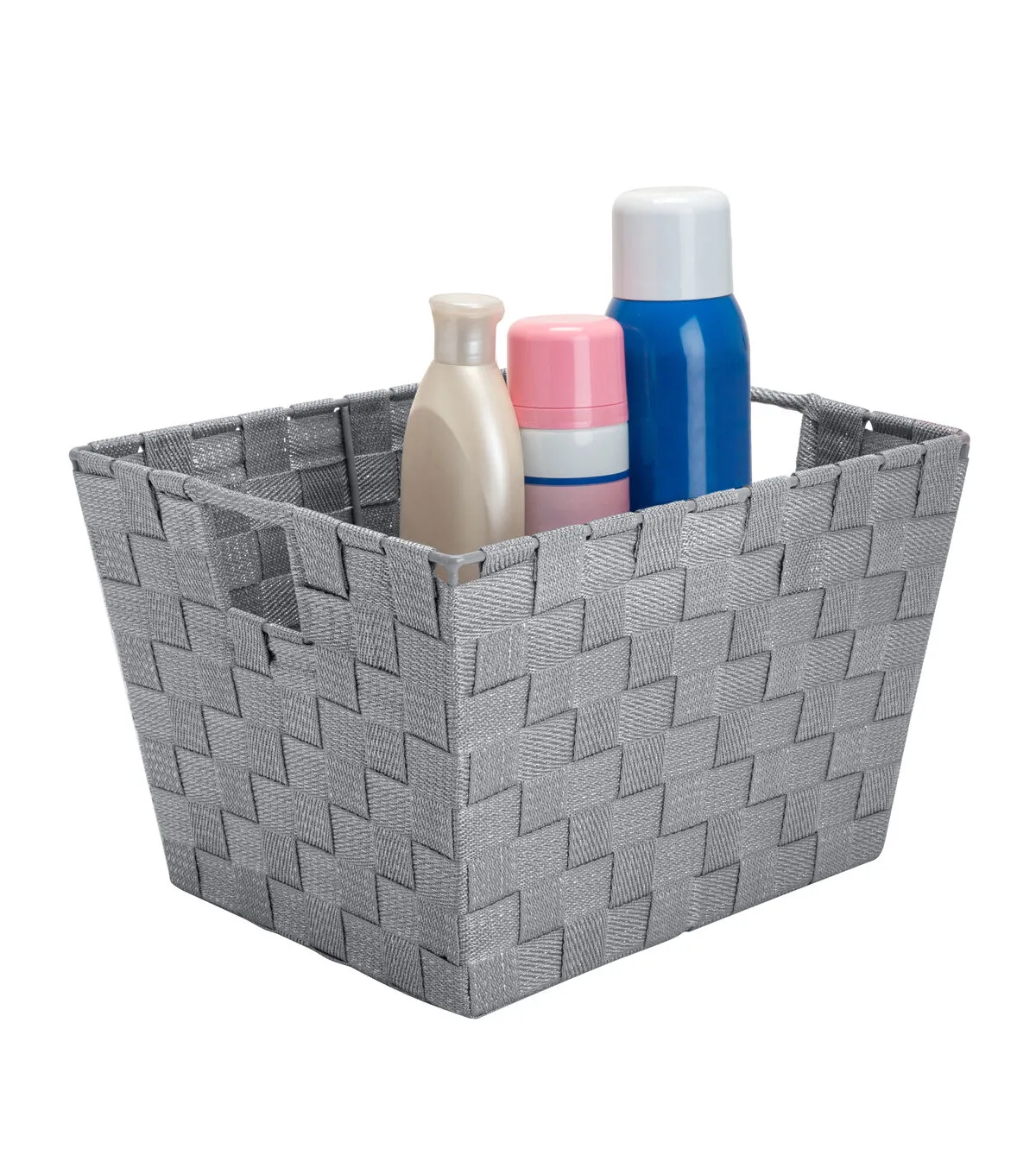 This Simplify Lurex Woven Strap Bin is made of sturdy polypropylene with epoxy wire frame and dual handles for easy carrying. Acts as a great storage accessory for all your home needs. Maintenance free. Durable and lightweight in design.