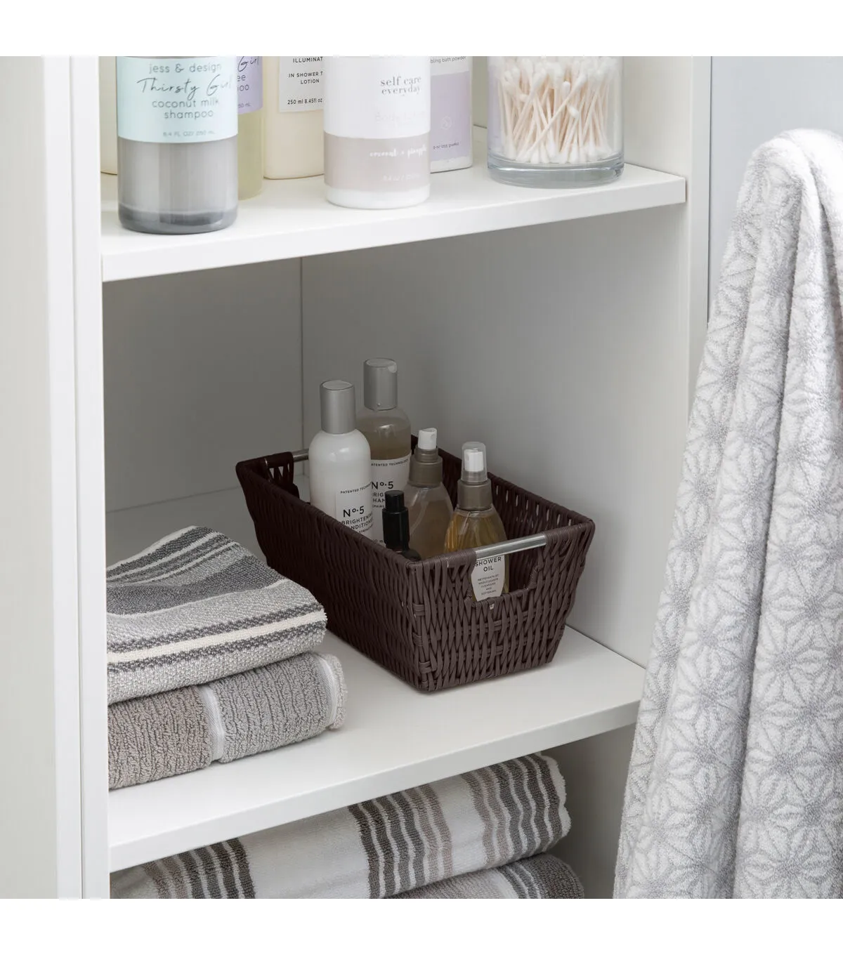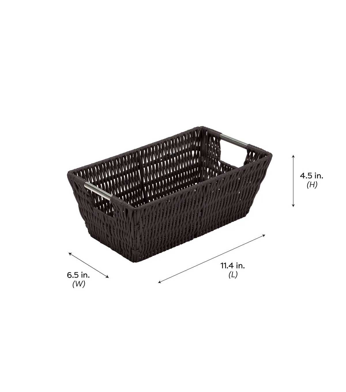 Organize and create storage in your home with the Simplify Rattan Tote Basket Collection. Simplify's Rattan Tote is a PE Basket with an iron frame and 2 sturdy stainless steel carry handles. It is strong and durable prolonging it's life, and it's lightweight design makes it easy to lift and carry. Fits any home decor with it's wide selection of colors. Store your household belongings and organize space with these stylish baskets. Stack them together in a corner of your craft area, home office or Dorm to keep your essentials close at hand in an organized manner.