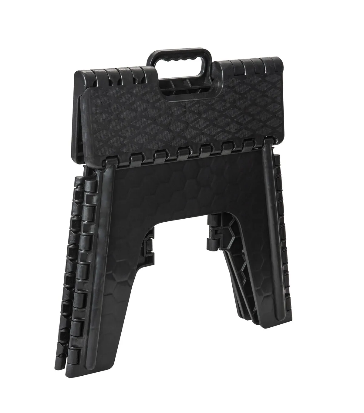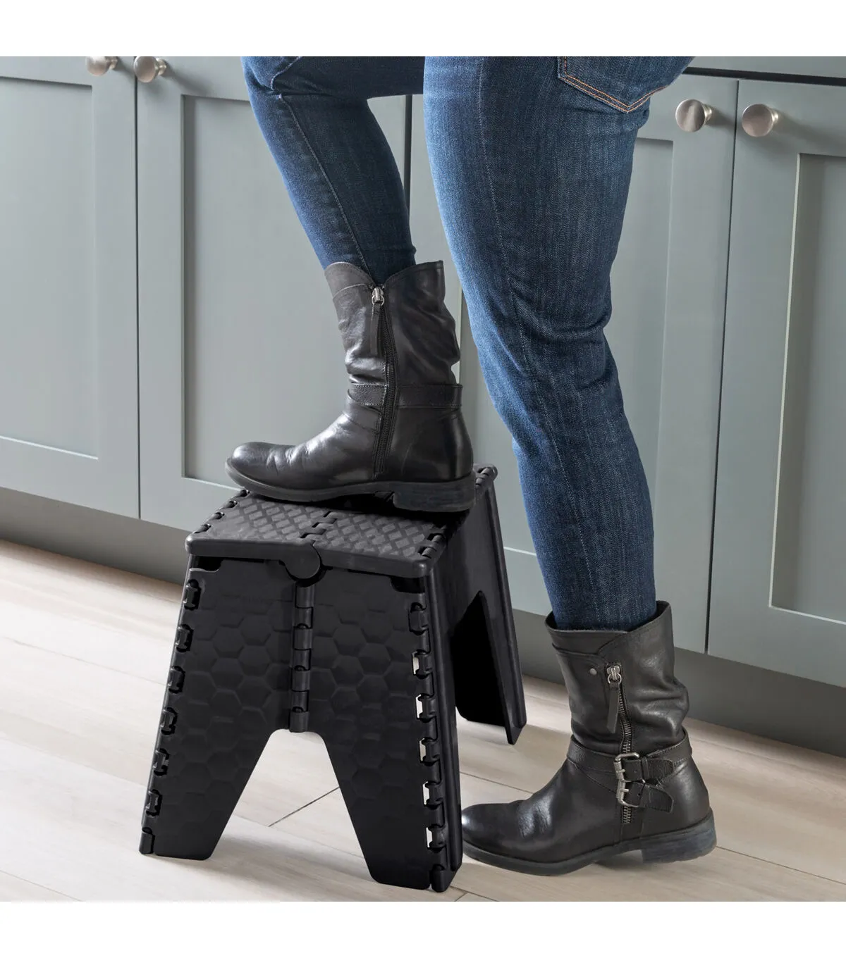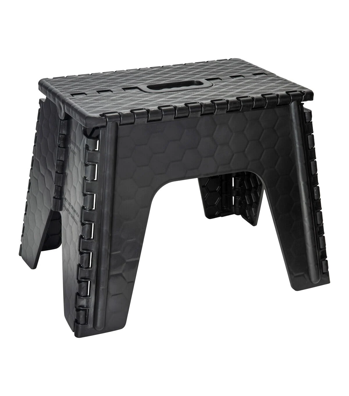 A must have in any home, dorm or office, the Simplify 12" Folding Step Stool. With an easy carry handle you can conveniently transport the stool to any room in the household. With the 12 inch height and weight capacity up to 300lbs, this stool can hold children and adults. The anti-skid foot pads keeps this item safe to use. When not in use the stool easily folds away for storage.
