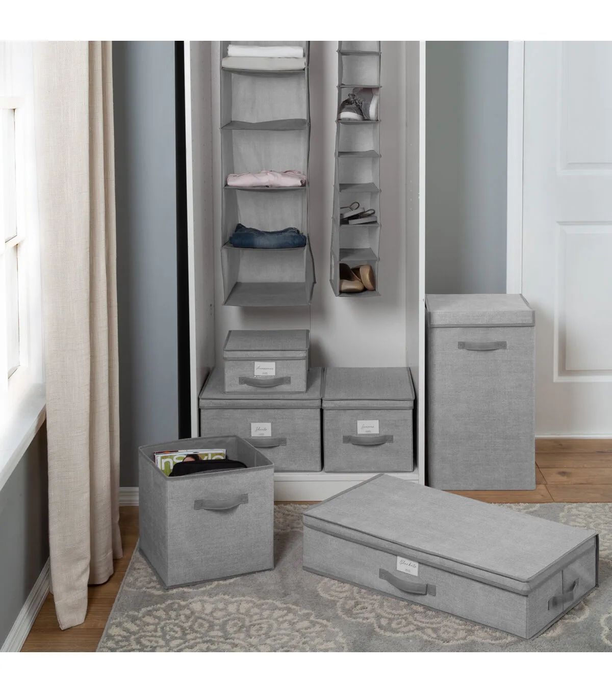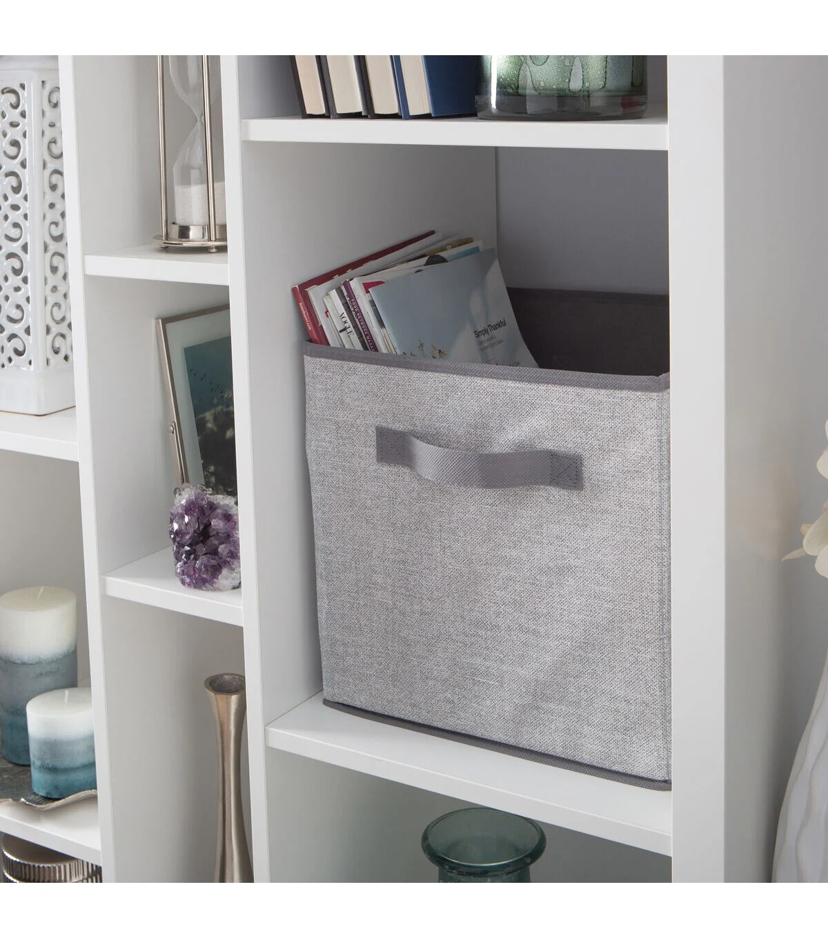 Simplify's Collapsible Storage Cube is made of breathable non woven and paper board material that prevents dust and damage, while easily sorting and storing off season items and accessories. Sturdy handle makes it easy to carry the storage cube around the house. Holds a multitude of items to help de clutter your living areas. Open top allows for easy access of all of the belongings in the cube. Folds flat for storage when not in use.