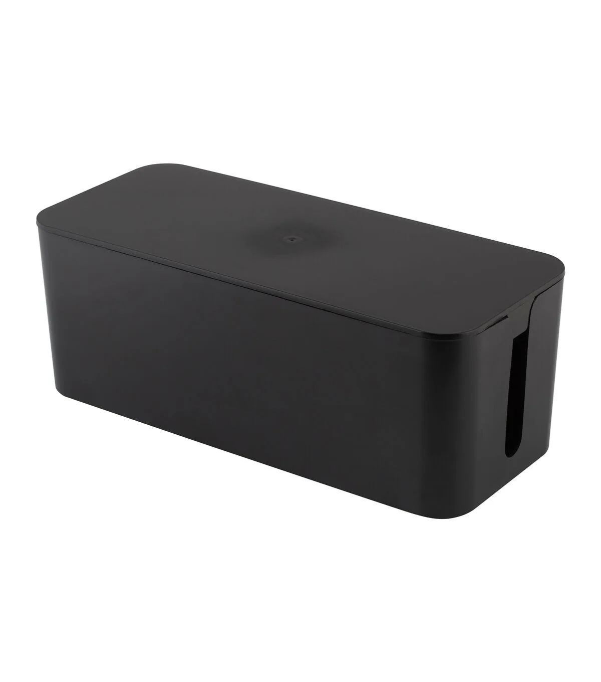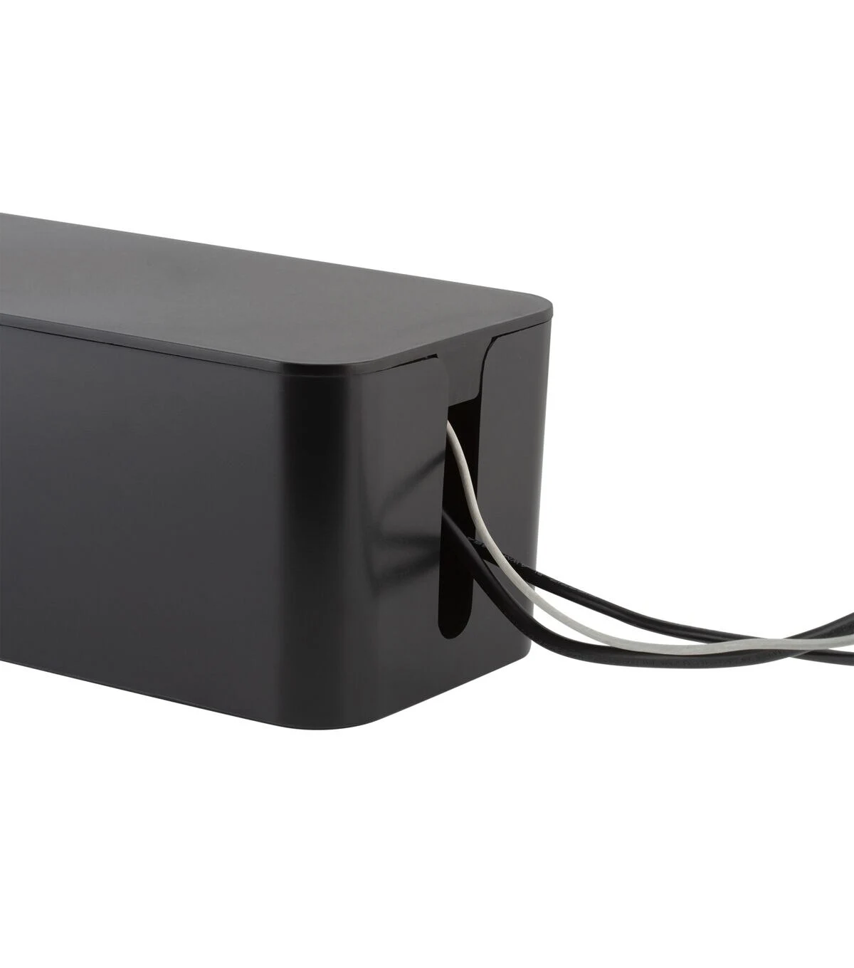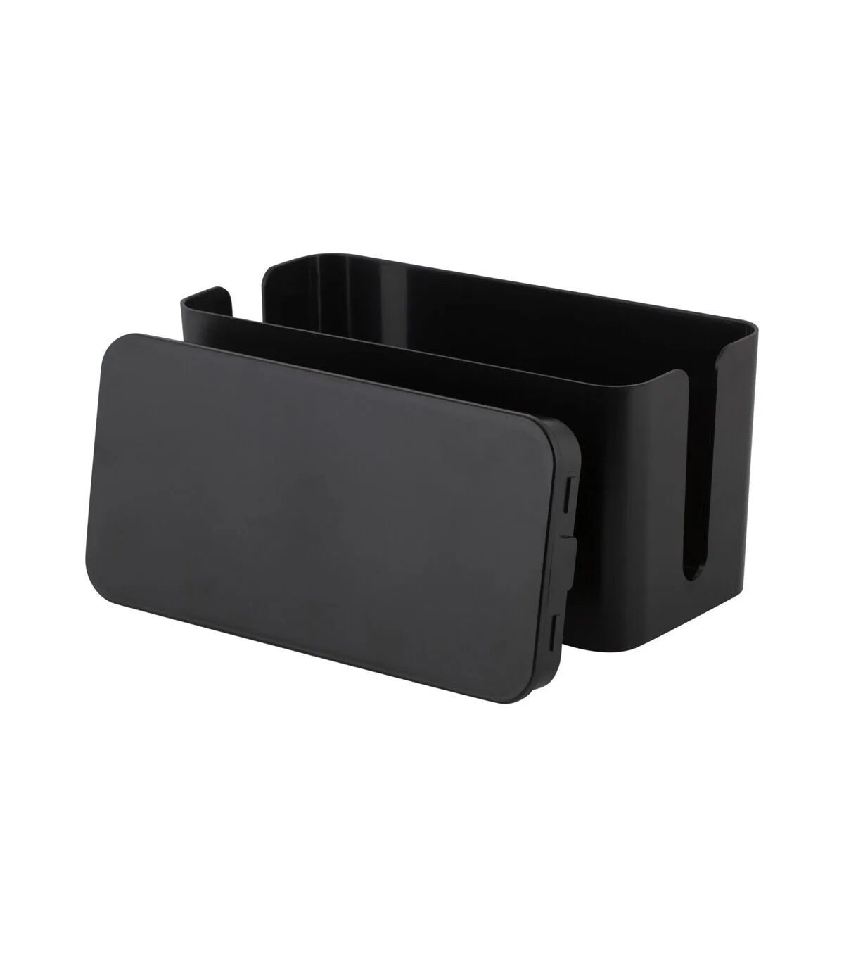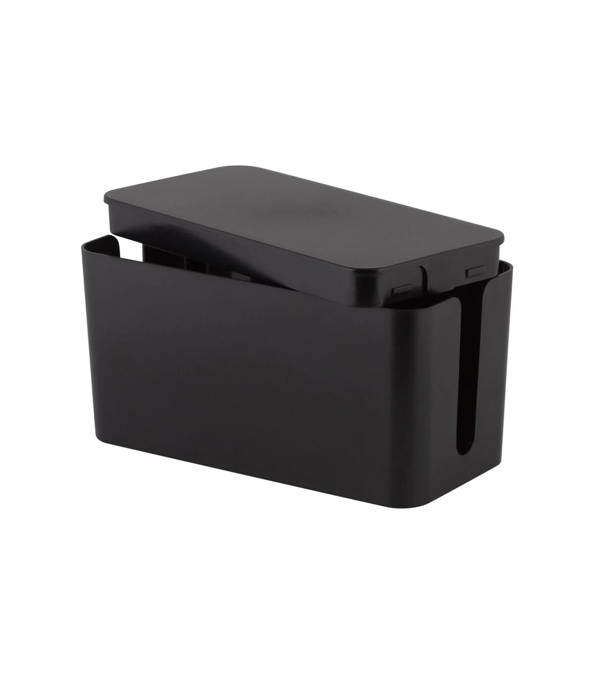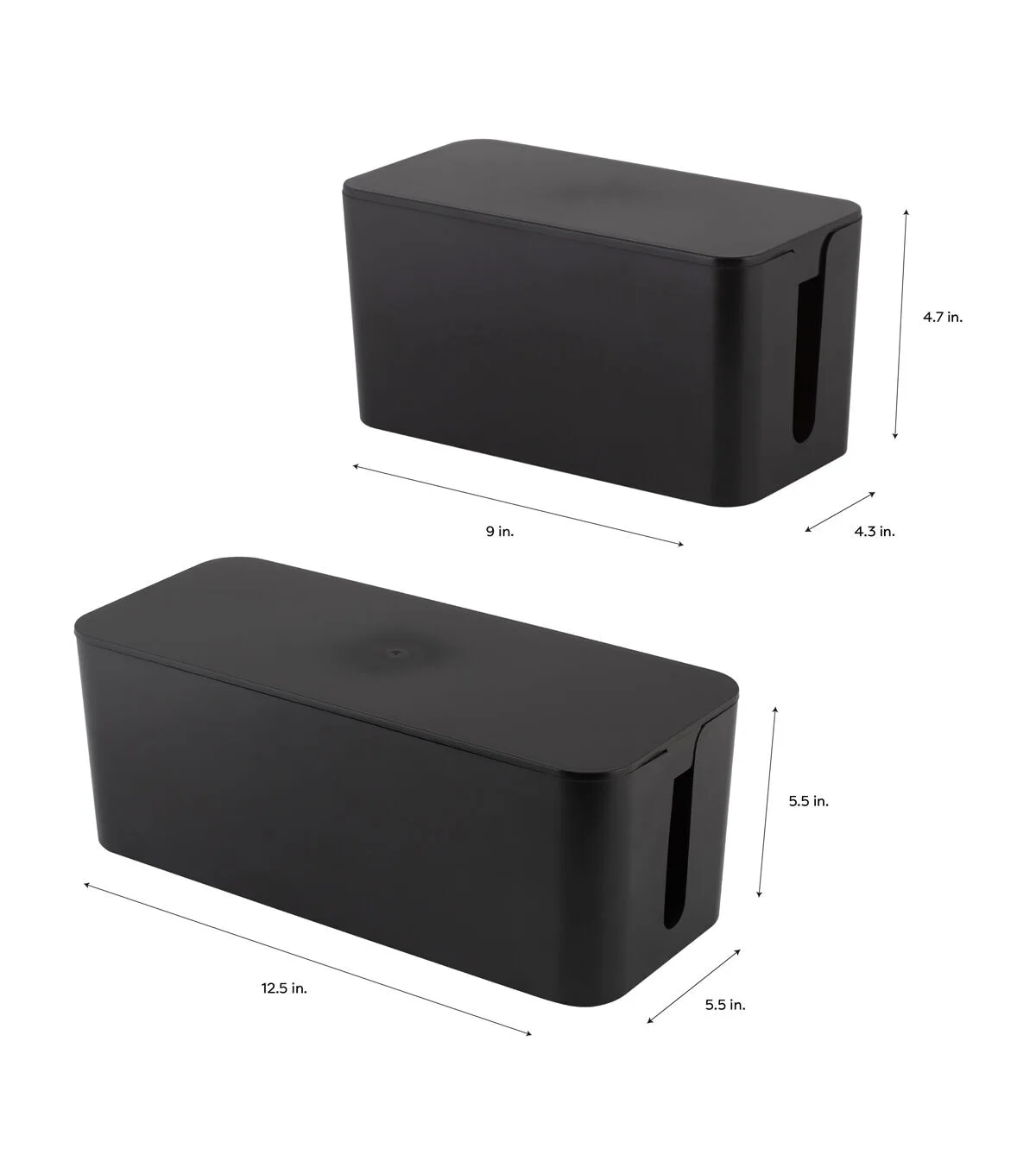 The Simplify 2 Pack Cable Organizer Boxes are the perfect way to keep messy cords out of sight. Feed the ends of the cords through the slots in the side of the box then put the lid back on to only expose the amount of cord you need. Keep the box on the floor next to the outlet or hidden behind a piece of furniture. This box keeps all your wires and cords from being exposed on the floor and prevents someone from tripping over them. The large box is perfect for tv and lamp cables. The small box is the perfect size to fit on your desk to hold phone chargers. Your room will look more organized once all of the cords are hidden away.
