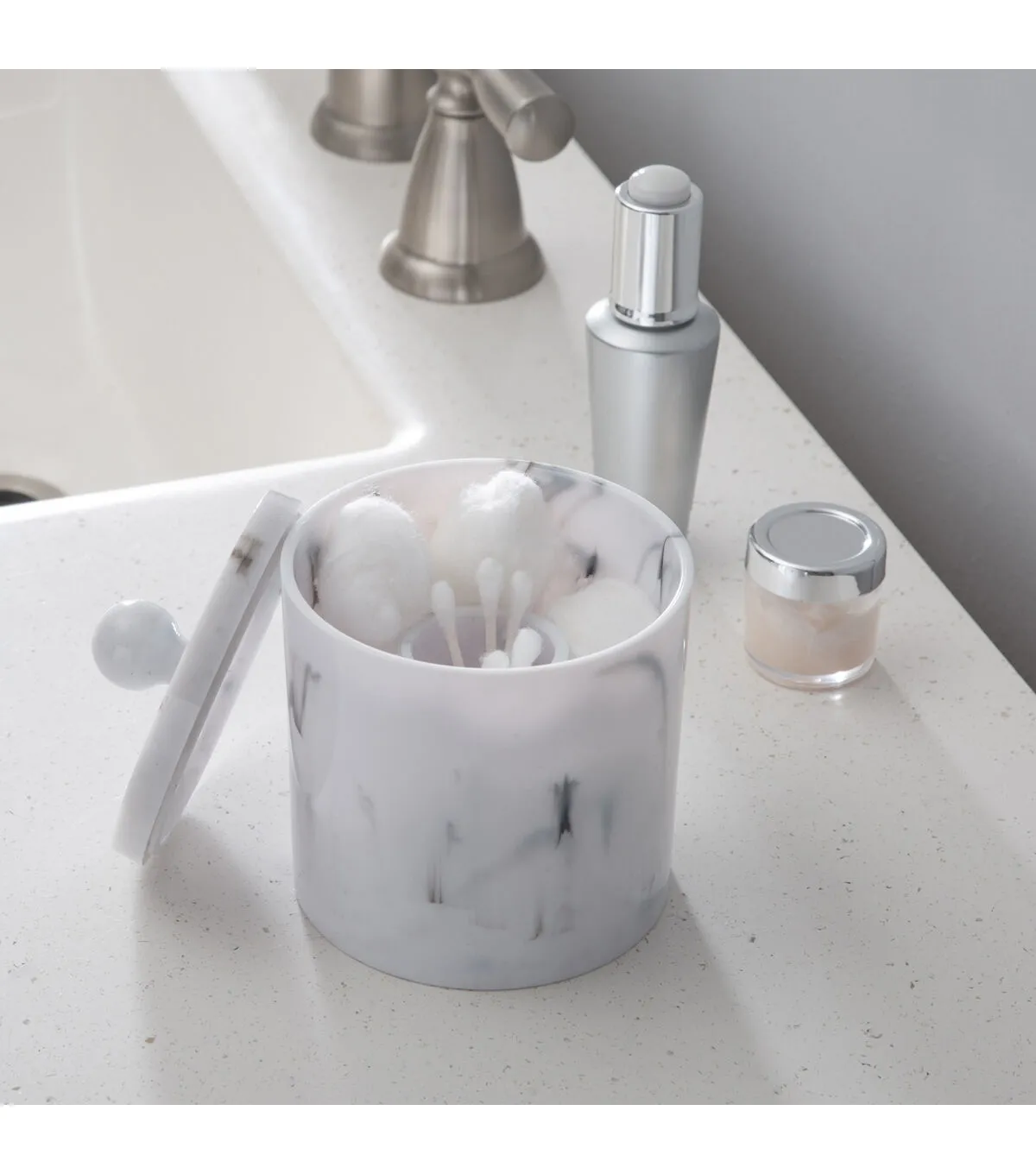 - 2 Compartments for Q-tips and Cotton Balls