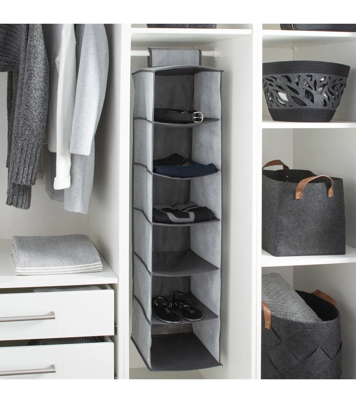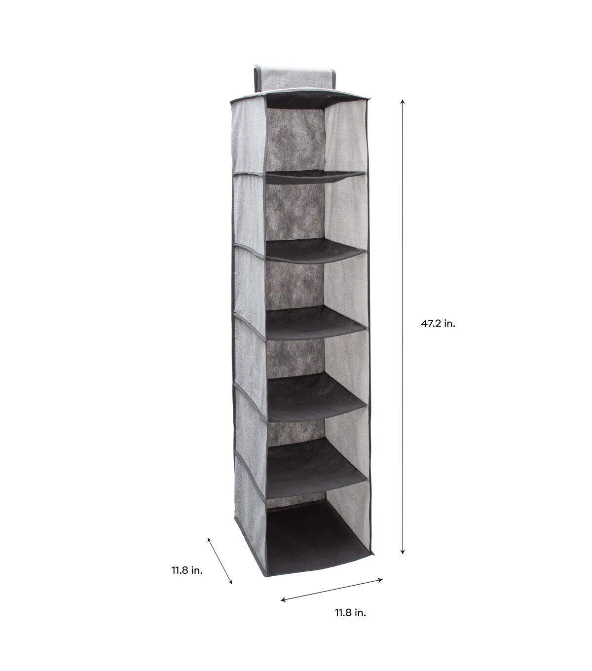 Simplify's 6 Shelf Non-woven Organizer is made of 100% Polypropylene Nonwoven breathable Material that acts as instant organization for your closet or room. With 6 full length board shelves that prevent bowing and to allow easy access to all of your garments and belongings. Sturdy, durable fabric and cardboard liner helps maintain shape of the closet organizer. Easy installation hangs into any closet rods with it's strong Velcro closure, and when not in use, simply fold it up and put in storage, saving space.