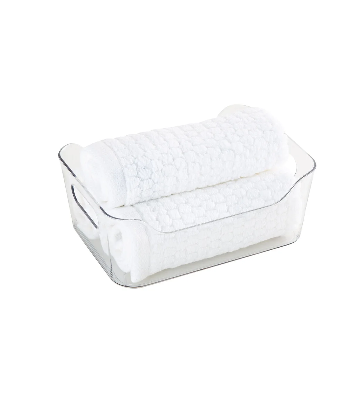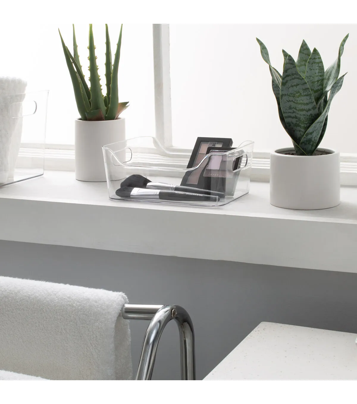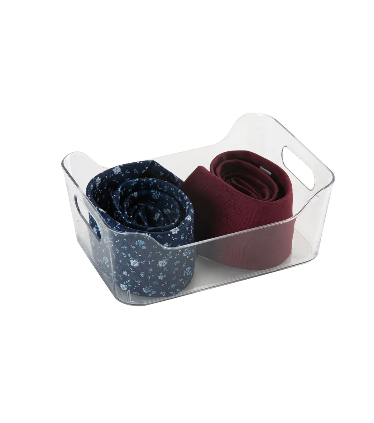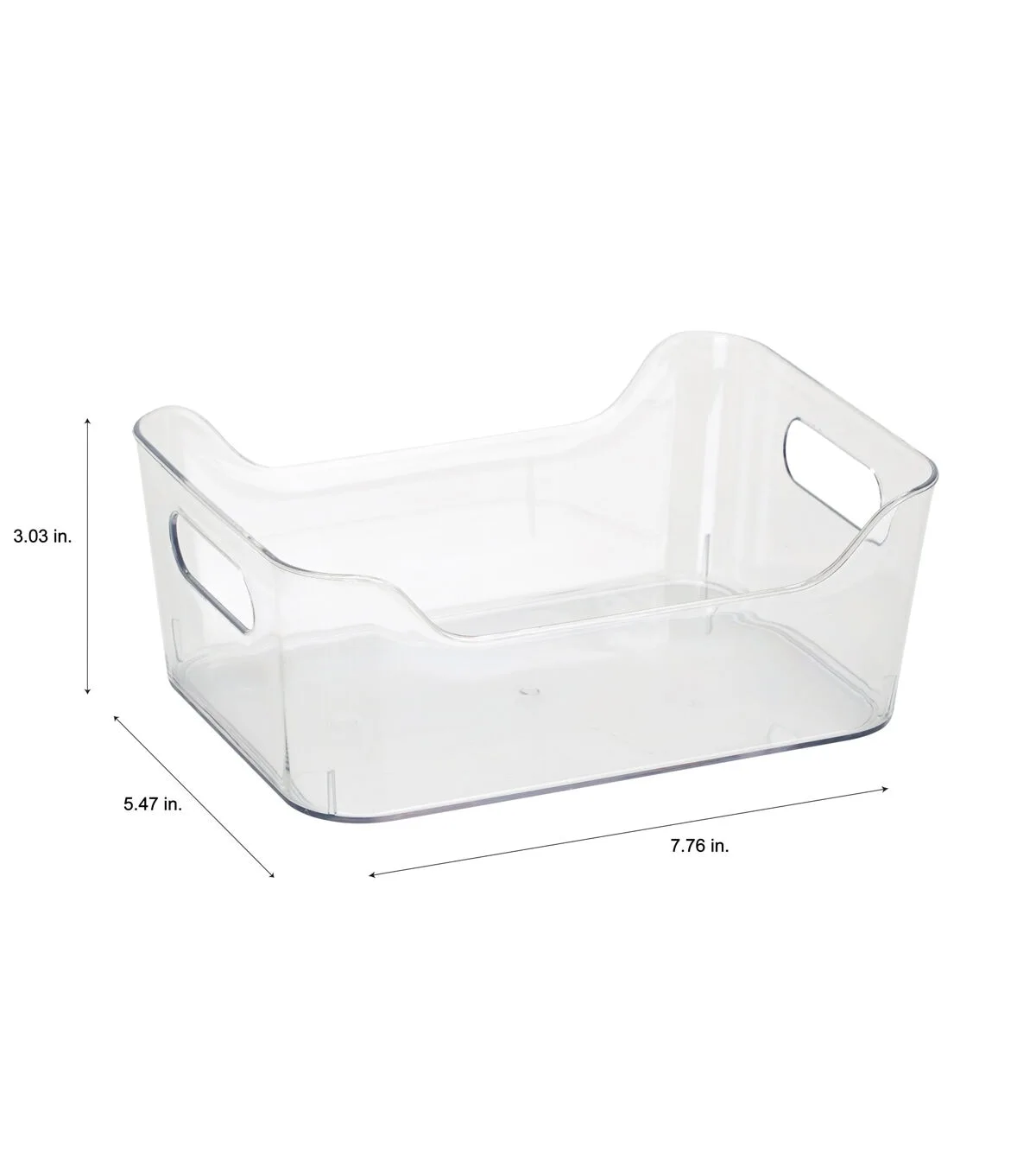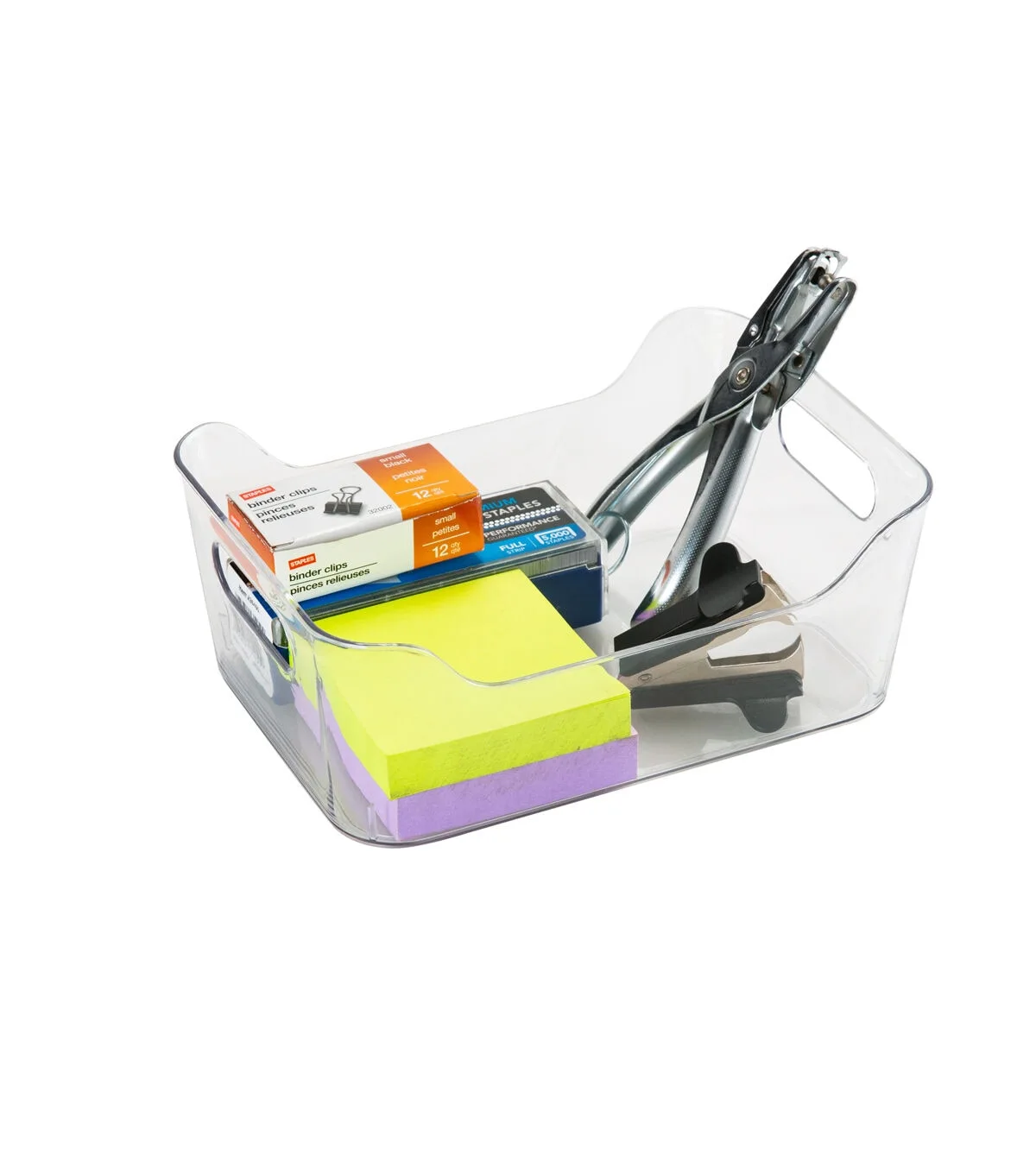 The Simplify 3 Pack Small Storage Tote Bin is the best storage and organization solution. It is the perfect size for desk accessories such as pens, pencils, and note paper. It is also good for holding jewelry and cosmetics and brushes. Keep it in your bathroom to help organize shampoos and soaps. The clear design makes items inside visible and easy to find. The handle cut outs make it easy to lift and slide the bin. You can keep this transparent storage bin on your desktop or countertop surface because it fits with any room’s décor. You need this bin to help you organize your home!