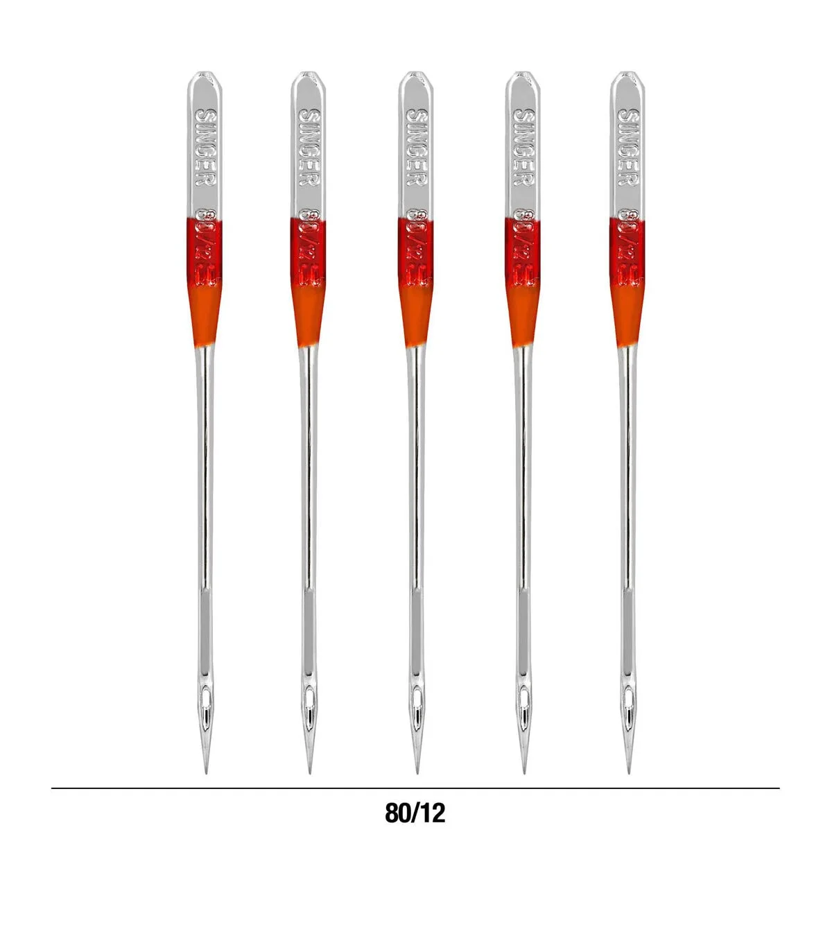 - SINGER Universal regular point needles in size 80/12 are designed for standard stitching performed by a domestic sewing machine. Universal needles are best for lightweight woven fabrics. Needles can be used by SINGER, Brother, Kenmore and other quality sewing machines. The 5 machine needles come in a convenient plastic case with individual storage slots and sizes marked on the clear cover. Domestic machine needles are not applicable to industrial or handheld sewing machines.