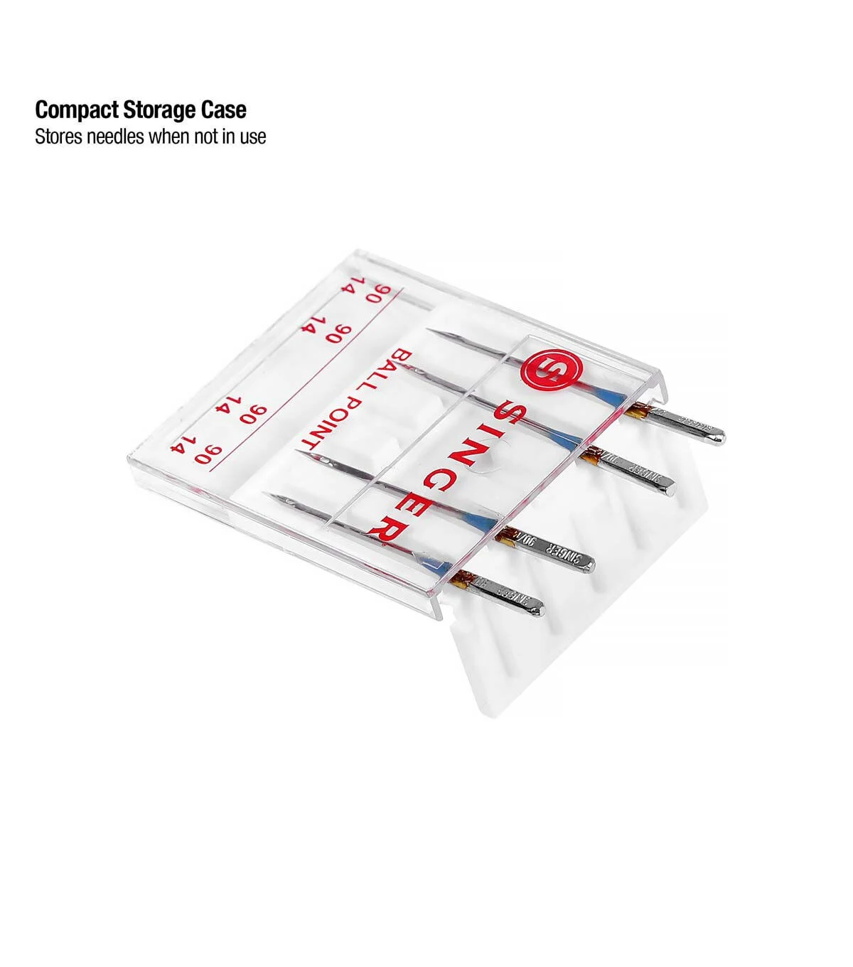 You will love to add the Singer Universal Ball Point Machine Needles to your collection of sewing machine needles. The tip of the needle is designed to slide between fibers of knit fabrics smoothly, without creating holes or runs on them. These needles are color-coded and sized 90/14, perfect for use on medium-weight knit fabrics. They are compatible with Singer, Brother, Kenmore and other standard sewing machines.