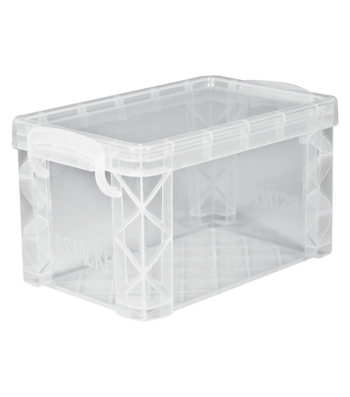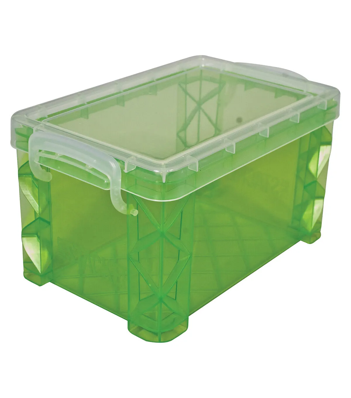 Don't sweat the small OR big stuff with Super Stacker. This space-saving storage system will bring organizational order to any space. Its stackable design is perfect for use with or without shelving, with a heavy-duty plastic construction that can accommodate large or heavy items. Easy snap-lock handles keep lid in place and contents secure for transport, and fun color variations make it easy to categorize and distinguish contents. Available in a variety of shapes and sizes!