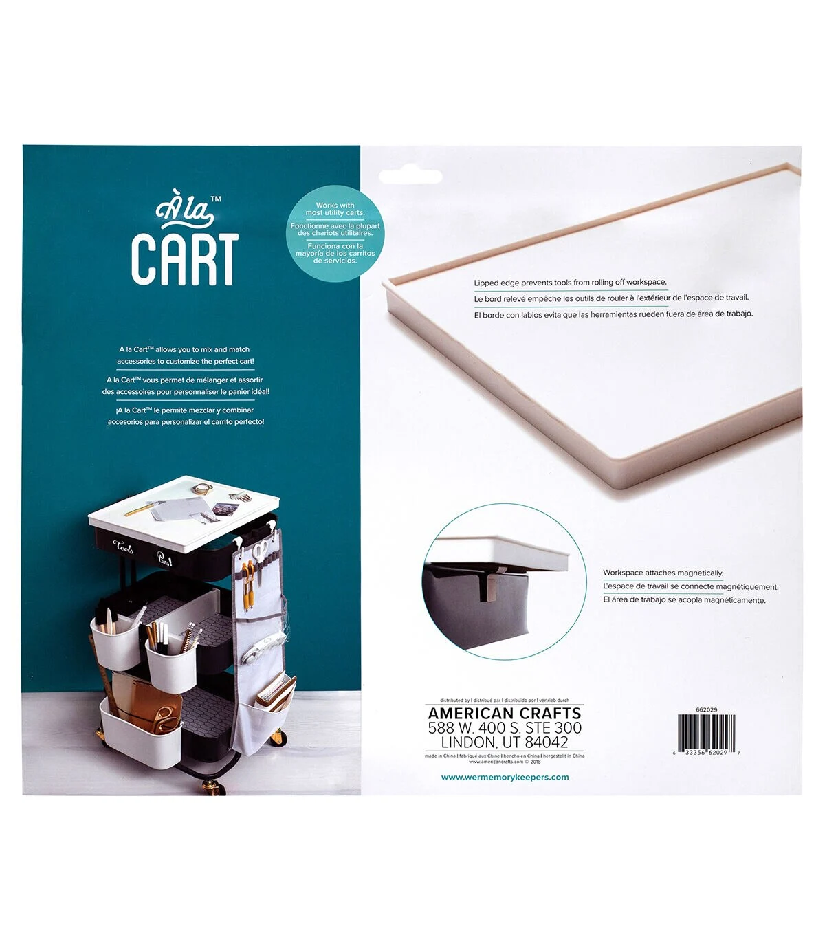 The choice is yours with A La Cart by We R Memory Keepers! Accessorize your A La Cart with this sturdy workspace. It fits on most major carts on the market, and features adjustable magnets, a lipped edge to keep tools from rolling off, and a 15x13-inch work space. This package includes one cart workspace for the A La Cart (sold separately).
