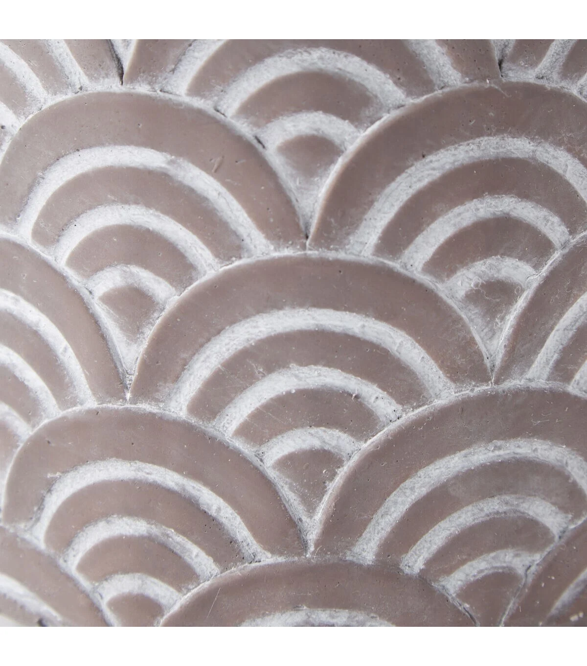 These unique pots which feature a geometric scallop design can be used for both indoor and outdoor plants and flowers. Set of 2 cement pots includes 1 each large and small pot. The Large Pot measures 6.25"x6.25" x5.5" and the Small Pot measures 4.5"x4.5"x4". Made of durable and long lasting cement, these pots will beautifully and securely display your flora. These pots have no drainage holes. Each pot has foam feet to prevent scratching surfaces. Beautiful but subtle designs allowing your plants and flowers to stand out. Wipe clean with damp cloth. Avoid using abrasive materials that may scratch the pot. Set nests for smaller footprint when storing.
