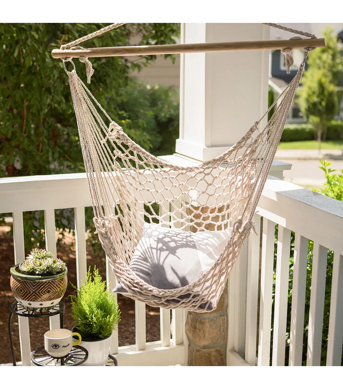 Perfect both indoors or out, this hammock is a great way to put your feet up and take it easy after a long day. Serves as patio, garden, porch, or bedroom seating, this piece will look amazing anywhere you put it!