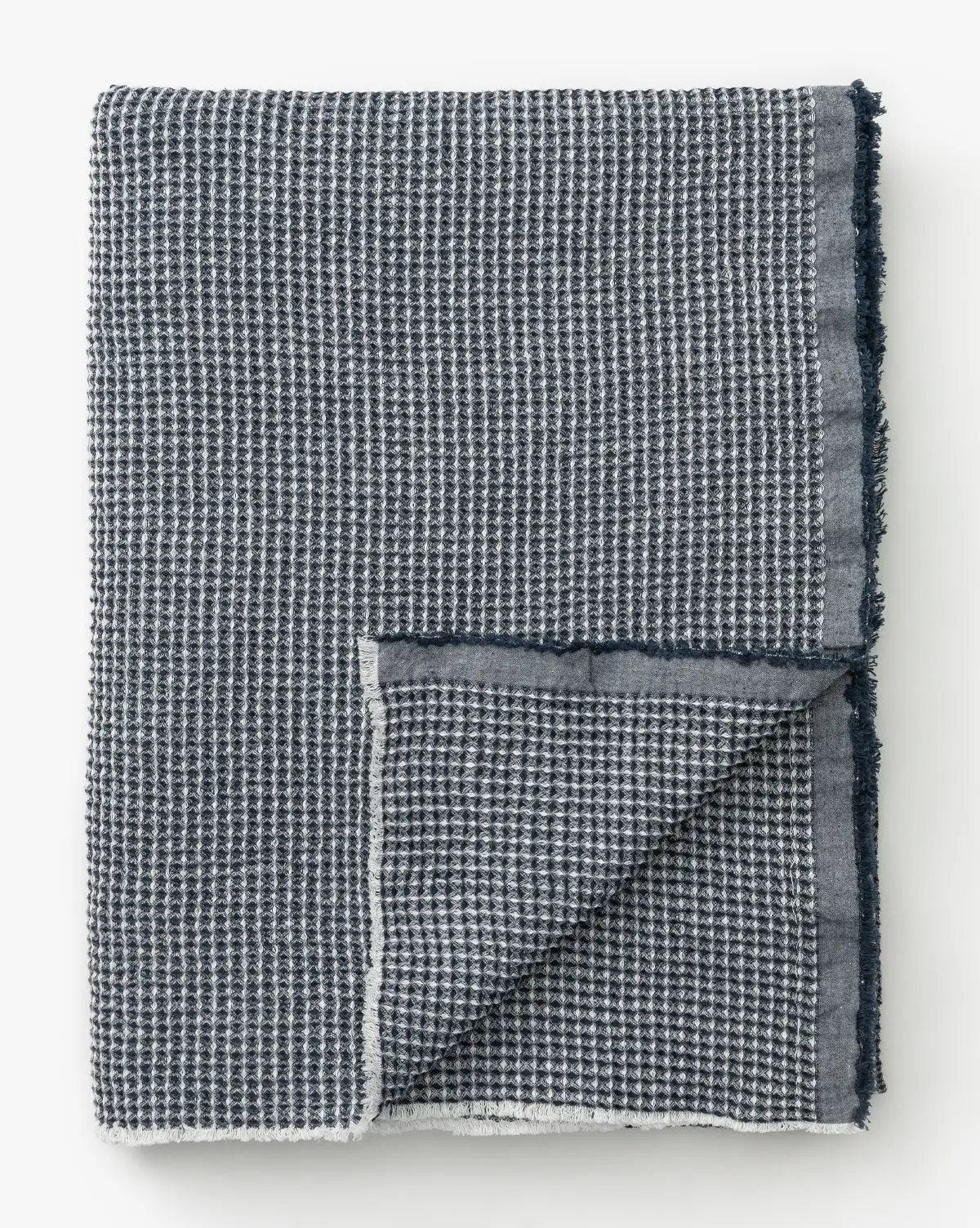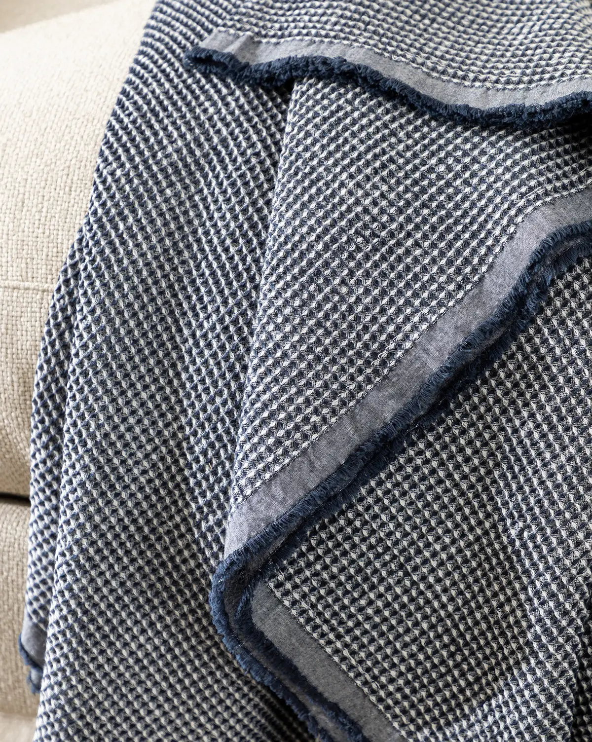 With a classic waffle weave, the Rebecca Throw is expertly made with cotton for lasting softness. Bringing texture and warmth, the throw’s deep navy color lends interest to textile layering and styling in any room in your home.